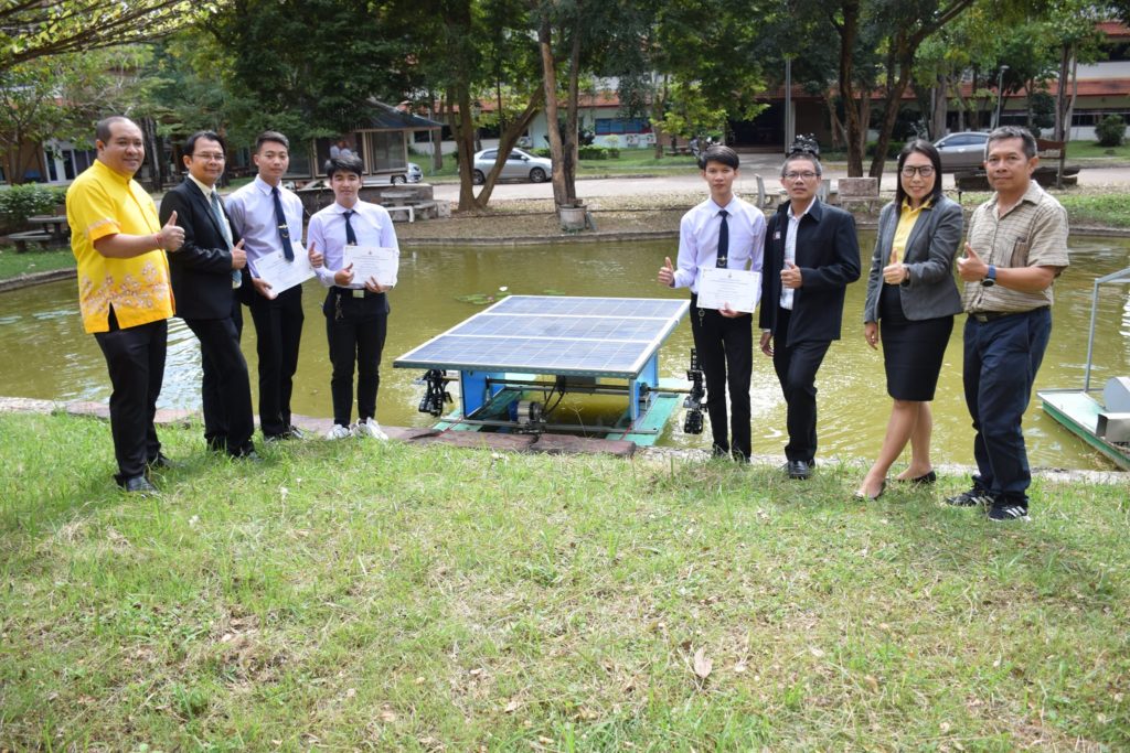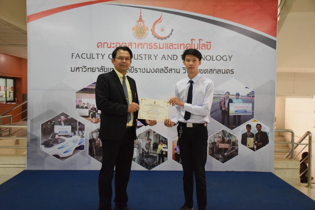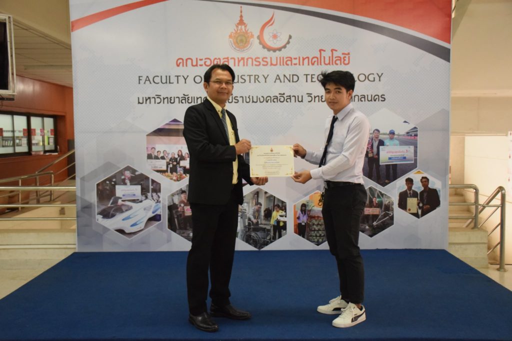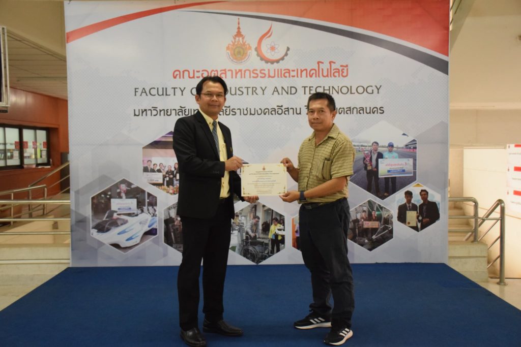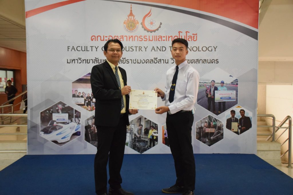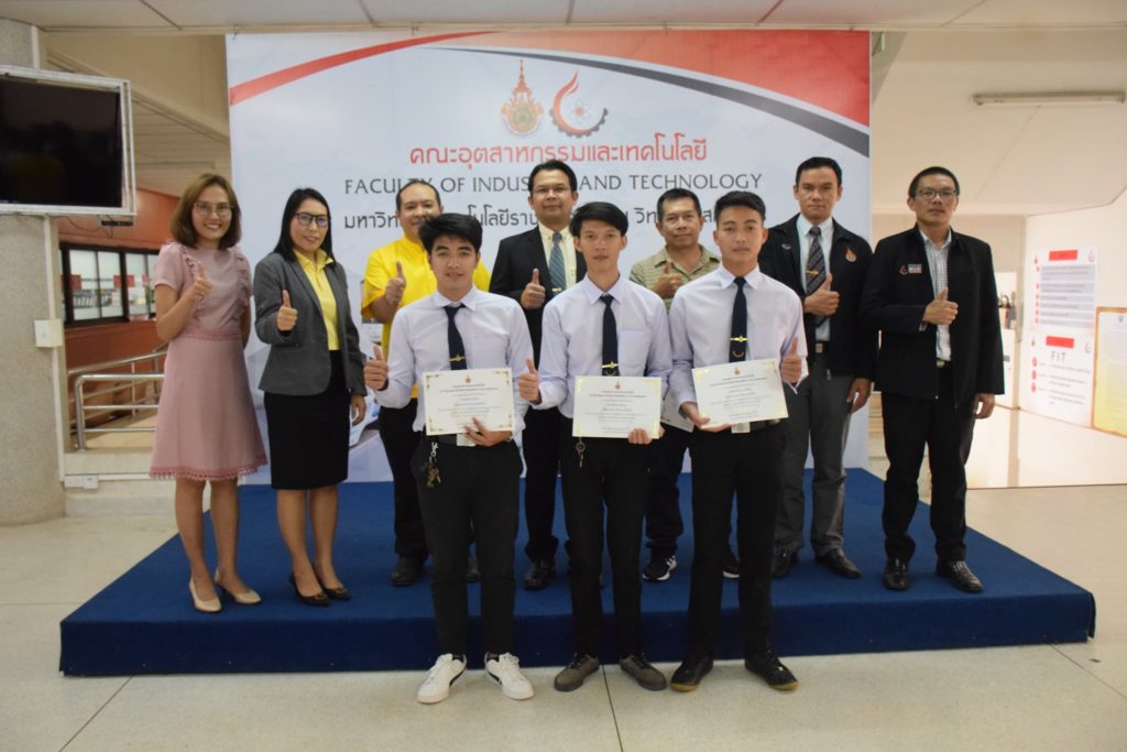 วันที่ 16 พฤศจิกายน 2563 คณะอุตสาหกรรมและเทคโนโลยี นำโดย ผศ.ดร.สุริยา แก้วอาษา คณบดีคณะอุตสาหกรรมและเทคโนโลยี มอบเกียรติบัตรแสดงความขอบคุณให้กับนักศึกษา ในการมอบสิ่งประดิษฐ์ นวัตกรรม เพื่อใช้ประโยชน์ในคณะอุตสาหกรรมและเทคโนโลยี ผลงาน “กังหันตีน้ำเติมอากาศส่งข้อมูลคุณภาพน้ำผ่าน IoT” โดย นายพัชรพล ต้นเคน นายธีระพงศ์ จองลีพันธ์ และนายศุภชัย ชมโสม นักศึกษาสาขาวิศวกรรมไฟฟ้า ซึ่งมีอาจารย์เจษฎา พรหมเกษ อาจารย์ประจำสาขาวิศวกรรมไฟฟ้า เป็นอาจารย์ที่ปรึกษา พร้อมกันนี้คณะผู้บริหาร และเจ้าหน้าที่ ร่วมเป็นเกียรติ