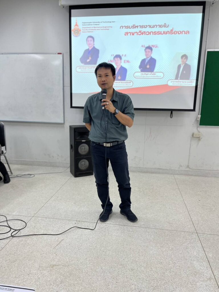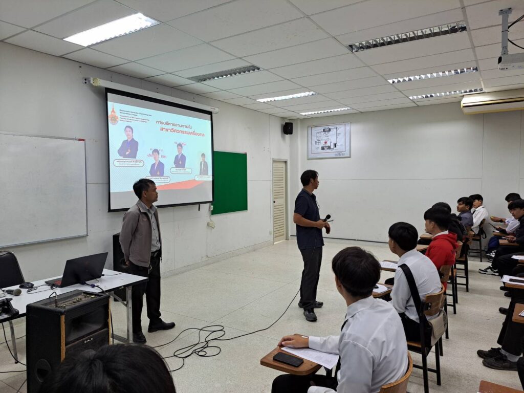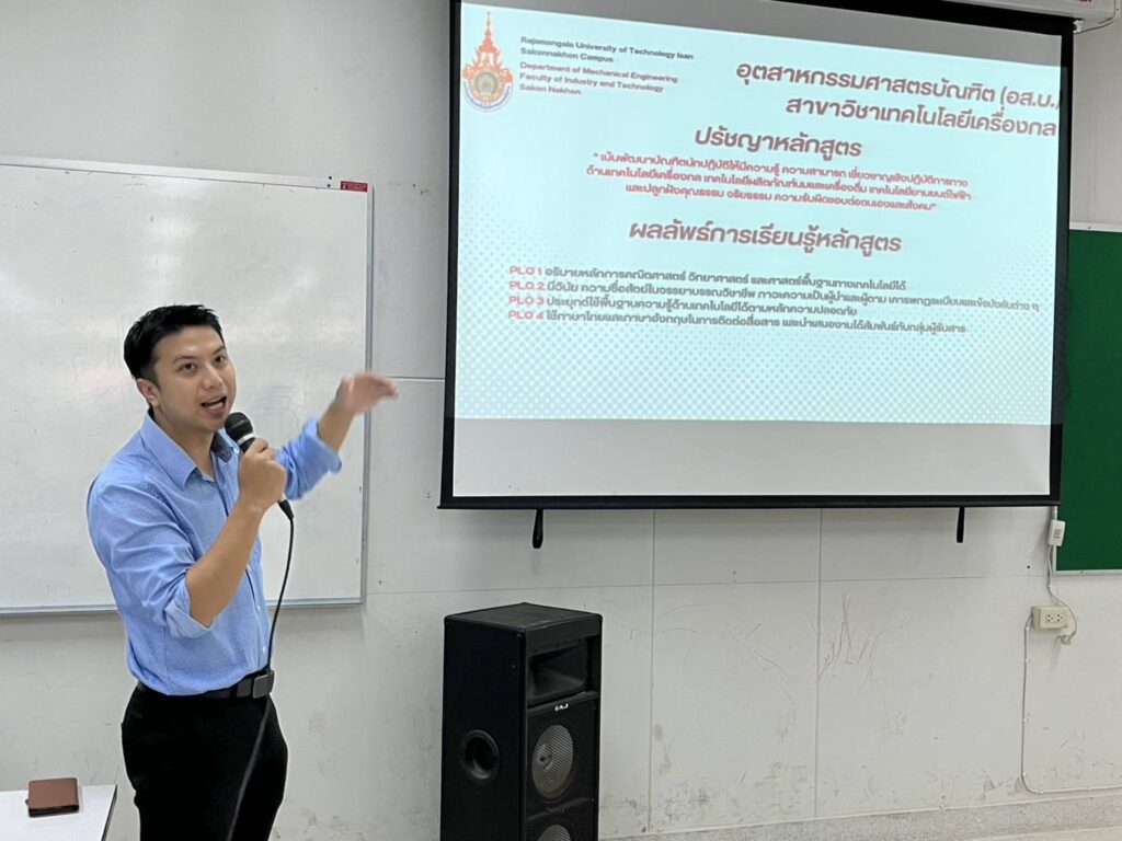 วันที่ 19 มิถุนายน 2568 สาขาวิศวกรรมเครื่องกล คณะอุตสาหกรรมและเทคโนโลยี มหาวิทยาลัยเทคโนโลยีราชมงคลอีสาน วิทยาเขต สกลนคร จัดกิจกรรมปฐมนิเทศนักศึกษาใหม่ ประจำปีการศึกษา 2568 ณ อาคารสำนักงานคณบดีคณะอุตสาหกรรมและเทคโนโลยี เพื่อให้ความรู้ แนวทางการศึกษาในหลักสูตร การลงทะเบียนเรียน วัตถุประสงค์และแผนการเรียนตลอดหลักสูตร รวมถึงแนวทางการใช้ชีวิตในรั้วมหาวิทยาลัย และช่วยสร้างความสัมพันธ์อันดีระหว่างคณาจารย์และนักศึกษา โดยได้รับเกียรติจาก ผศ. ดร.คุณานนต์ ศักดิ์กำปัง หัวหน้าสาขาวิศวกรรมเครื่องกล อาจารย์เขตพงศ์ อินทรชัยศรี อาจารย์ ดร.บัญชา ล้ำเลิศ และ อาจารย์ศรายุทธ พลสีลา ประธานหลักสูตรในสาขาวิศวกรรมเครื่องกล เป็นวิทยากร โดยมีคณาจารย์ เจ้าหน้าที่ และนักศึกษาสาขาวิศวกรรมเครื่องกล ร่วมต้อนรับนักศึกษาใหม่ในครั้งนี้โดยพร้อมเพรียงกัน