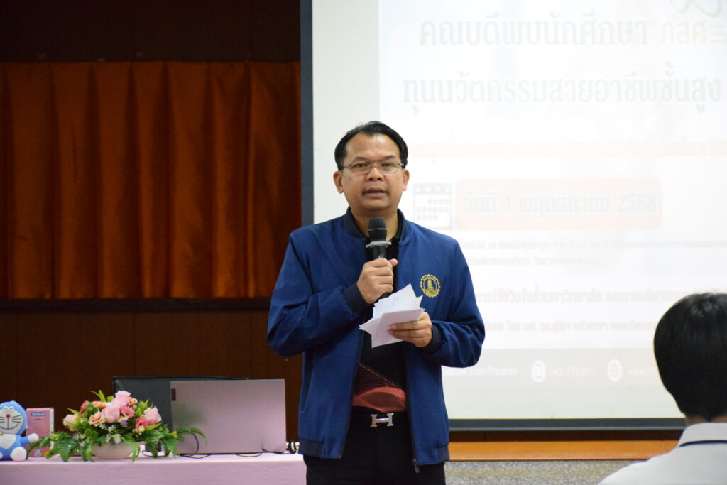 วันที่ 4 พฤศจิกายน 2568 คณะอุตสาหกรรมและเทคโนโลยี มหาวิทยาลัยเทคโนโลยีราชมงคลอีสาน วิทยาเขตสกลนคร จัดกิจกรรมคณบดีพบนักศึกษาทุนนวัตกรรมสายอาชีพชั้นสูง กองทุนเพื่อความเสมอภาคทางการศึกษา (กสศ.) ประจำปีการศึกษา 2568 ณ ห้องประชุมค้ำคูณ 4 อาคารสำนักงานคณบดีคณะอุตสาหกรรมและเทคโนโลยี เพื่อสร้างความเข้าใจที่ถูกต้องเกี่ยวกับนโยบายและแนวทางการดำเนินงาน เปิดโอกาสให้นักศึกษาได้พบปะ พูดคุย แลกเปลี่ยนความคิดเห็น และสะท้อนปัญหาหรือข้อเสนอแนะต่อผู้บริหาร เสริมสร้างความสัมพันธ์อันดีระหว่างคณาจารย์และนักศึกษา เกิดการพัฒนาการเรียนรู้และการใช้ชีวิตในรั้วมหาวิทยาลัยอย่างมีคุณภาพ โดยได้รับเกียรติจาก ผศ. ดร.สุริยา แก้วอาษา คณบดีคณะอุตสาหกรรมและเทคโนโลยี เป็นประธานในพิธี พร้อมทั้งบรรยายให้ความรู้กับนักศึกษาทุนในครั้งนี้