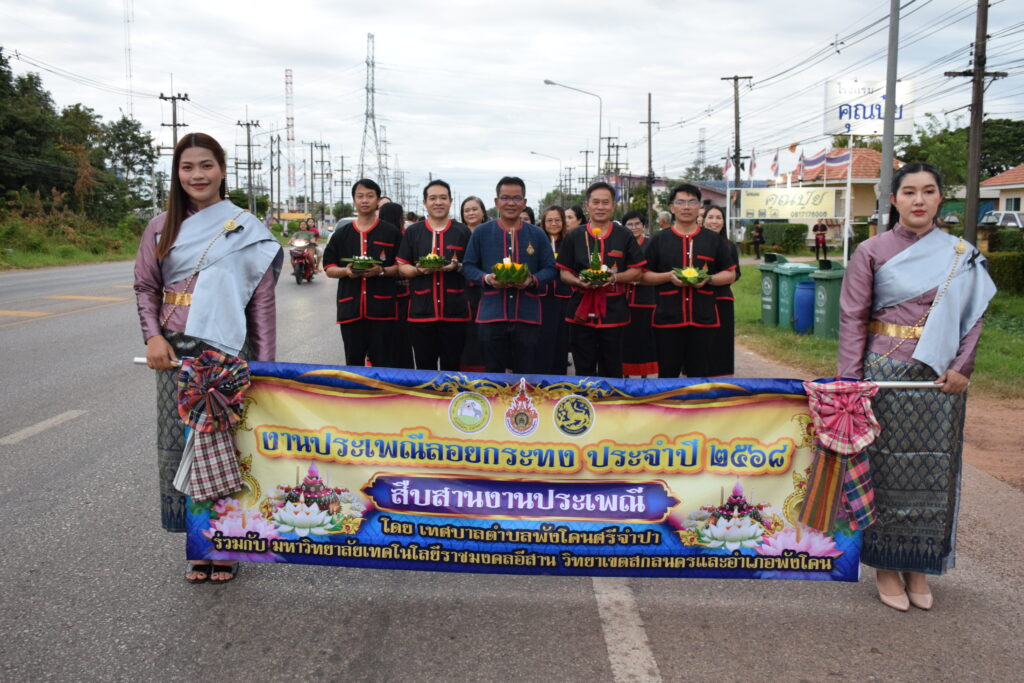 วันที่ 4 – 5 พฤศจิกายน 2568 คณะอุตสาหกรรมและเทคโนโลยี มหาวิทยาลัยเทคโนโลยีราชมงคลอีสาน วิทยาเขตสกลนคร เข้าร่วมกิจกรรมสืบสานประเพณีวันลอยกระทง ประจำปี 2568 “ยลศิลป์ถิ่นผ้าคราม สืบสานประเพณีลอยกระทง” เพื่อร่วมอนุรักษ์และสืบทอดขนบธรรมเนียมประเพณีอันดีงามของไทยให้คงอยู่สืบไป โดยมีกิจกรรมประกอบด้วย การประกวดนางนพมาศราชมงคลสกลนคร ซึ่งมีนักศึกษาคณะอุตสาหกรรมและเทคโนโลยี จากสาขาบริหารธุรกิจ และสาขาวิศวกรรมไฟฟ้าเข้าร่วมการประกวด กิจกรรมประกวดกระทงสวยงาม กิจกรรมแห่กระทงจากทุกชุมชนของเทศบาลตำบลพังโคนศรีจำปา พร้อมด้วยคณะผู้บริหาร มหาวิทยาลัยเทคโนโลยีราชมงคลอีสาน พิธีขอขมาพระแม่คงคาและกิจกรรมลอยกระทง โดยมีคณะผู้บริหาร คณาจารย์ เจ้าหน้าที่ และนักศึกษา เข้าร่วมกิจกรรมโดยพร้อมเพรียงกัน