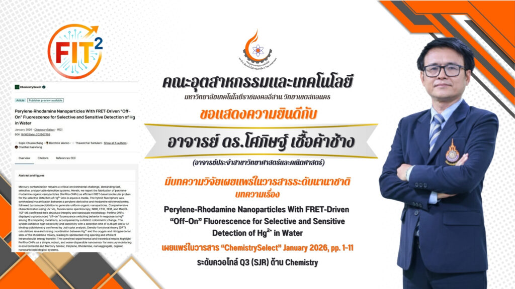 คณะอุตสาหกรรมและเทคโนโลยี ขอแสดงความยินดีกับอาจารย์ที่มีบทความวิจัยเผยแพร่ในวารสารระดับนานาชาติ