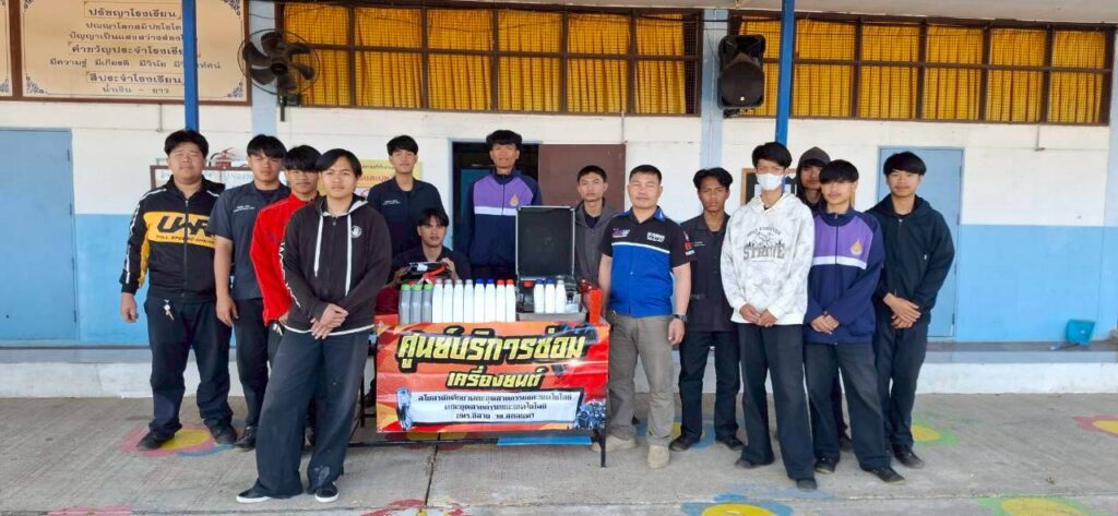 วันที่ 21 – 22 กุมภาพันธ์ 2569 คณะอุตสาหกรรมและเทคโนโลยี นำโดย อาจารย์เดือนรุ่ง สุวรรณโสภา รองคณบดีฝ่ายพัฒนานักศึกษา พร้อมด้วยคณาจารย์ และนักศึกษาทุนนวัตกรรมสายอาชีพชั้นสูง กองทุนเพื่อความเสมอภาคทางการศึกษา (กสศ.) ระดับ ปวช. รุ่น 6 จัดกิจกรรมค่ายอาสาแบ่งปันรอยยิ้ม ณ โรงเรียนบ้านหนองผือนาใน ตำบลนาใน อำเภอพรรณานิคม จังหวัดสกลนคร เพื่อส่งเสริมให้นักศึกษา มีส่วนร่วมในการทำกิจกรรมจิตอาสา ส่งเสริมให้นักศึกษาเป็นบัณฑิตนักปฏิบัติที่มีจิตสาธารณะ ปลูกฝังคุณธรรมจริยธรรม และความรับผิดชอบ ต่อสังคม ผ่านการใช้ทักษะความสามารถทางวิชาชีพมาปรับใช้ในการพัฒนาคุณภาพชีวิตของนักเรียนและประชาชนในพื้นที่ โดยมีการจัดศูนย์ ให้บริการซ่อมเครื่องยนต์ และเครื่องใช้ไฟฟ้า ให้กับประชาชนอีกด้วย