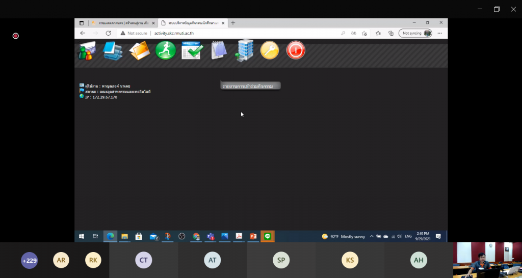 วันที่ 29 กันยายน 2564 คณะอุตสาหกรรมและเทคโนโลยี มทร.อีสาน วิทยาเขตสกลนคร นำโดย อาจารย์จารุวัฒน์ ถาวรไพศาลชีวะ รองคณบดีฝ่ายพัฒนานักศึกษา จัดกิจกรรมให้ความรู้เกี่ยวกับระบบบริหารกิจกรรมนักศึกษา ประจำภาคเรียนที่ 1/2564 ผ่านระบบอิเล็กทรอนิกส์ Microsoft Team ณ ห้องประชุมสำนักงานคณบดี ชั้น 2 อาคารสำนักงานคณบดีคณtอุตสาหกรรมและเทคโนโลยี โดยมีวัตถุประสงค์เพื่อให้นักศึกษามีความเข้าในเกี่ยวกับระบบบริหารกิจกรรมนักศึกษาและการเข้าใช้งานระบบ ตลอดจนทราบถึงทิศทางในการเข้าร่วมกิจกรรมของนักศึกษา ให้เป็นไปตามระเบียบมหาวิทยาลัยว่าด้วยการบริหารกิจกรรมนักศึกษา ในการนี้ ผศ.ดร.พรเทพ ปัญญาแก้ว รองคณบดีฝ่ายวิชาการและวิจัย ให้เกียรติเป็นประธานในพิธีเปิดกิจกรรมในครั้งนี้