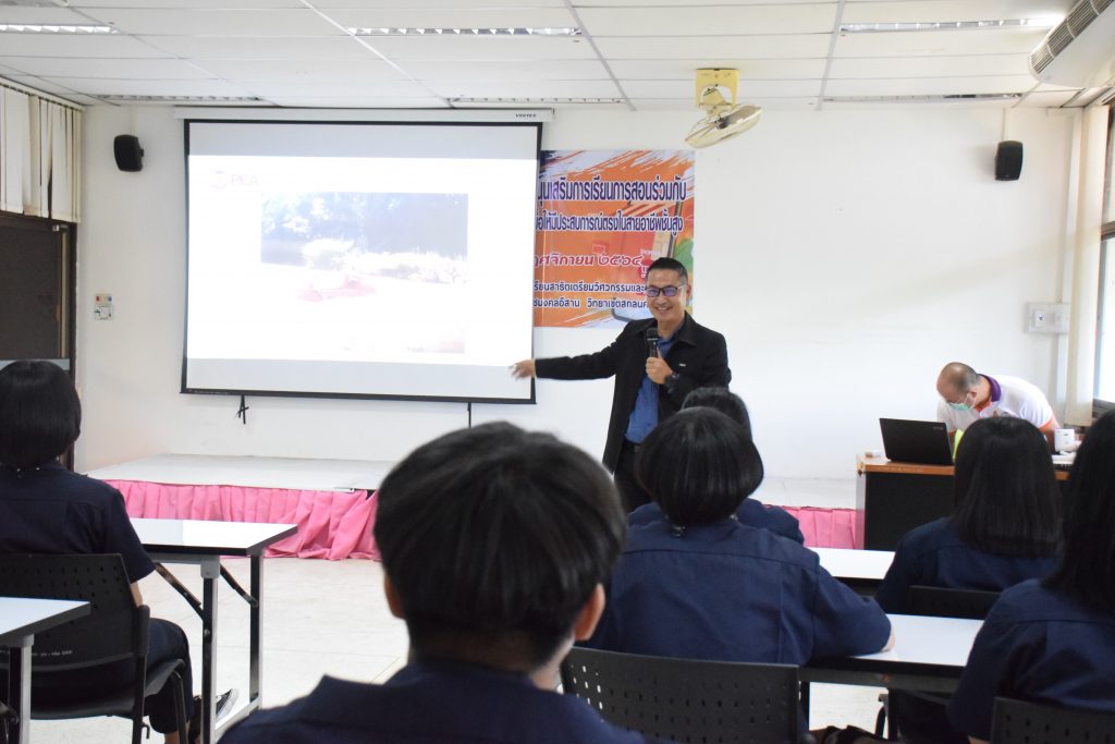 วันที่ 4 พฤศจิกายน 2564 โรงเรียนสาธิตเตรียมวิศวกรรมและเทคโนโลยีคณะอุตสาหกรรมและเทคโนโลยี มทร.อีสาน วิทยาเขตสกลนคร จัดกิจกรรมหนุนเสริมการเรียนการสอนร่วมกับสถานประกอบการหรือผู้เชี่ยวชาญเพื่อให้มีประสบการณ์ตรงในสายอาชีพชั้นสูง ณ อาคารอเนกประสงค์ โดยมีวัตถุประสงค์เพื่อให้นักศึกษาได้รับความรู้เพิ่มเติมนอกเหนือจากห้องเรียนจากผู้เชี่ยวชาญในสาขาอาชีพและเพื่อเพิ่มโอกาสการทำงานในสถานประกอบการที่มีคุณภาพ ในการนี้ ผศ.ดร.สุริยา แก้วอาษา คณบดีคณะอุตสาหกรรมและเทคโนโลยีให้เกียรติเป็นประธานในพิธีเปิดโครงการ เเละได้รับเกียรติจากคุณซันซิล ศรีสวัสดิ์ จากบริษัท โตโยต้าเบสท์ จำกัด และคุณประกิต ประทุมชาติ จากการไฟฟ้าส่วนภูมิภาค สาขาอำเภอพังโคน เป็นวิทยากรโครงการ