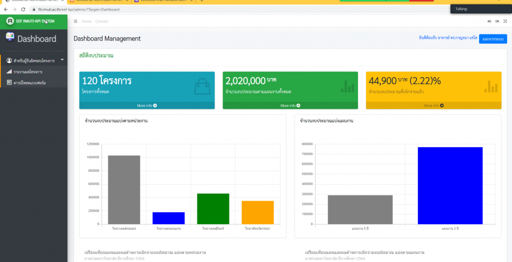 เมื่อวันที่ 25 ตุลาคม 2564 คณะอุตสาหกรรมและเทคโนโลยี ได้จัดโครงการอบรมการใช้งานระบบติดตามการเบิกจ่ายและติดตามการดำเนินงานโครงการตามแผนงาน กสศ. มหาวิทยาลัยเทคโนโลยีราชมงคลอีสาน (EEF RMUTI-KPI SYSTEM) ขึ้นโดยมีวัตถุประสงค์เพื่อเป็นการให้บุคลากรผู้รับผิดชอบโครงการตามแผนงาน กสศ. มทร.อีสาน (ทั้ง 4 วิทยาเขต) ได้รับความรู้ความเข้าใจในการใช้งานระบบ EEF RMUTI-KPI SYSTEM และความรู้ด้านการสรุปประเมินผลโครงการ ในการนี้ระบบดังกล่าวเป็นนวัตกรรมที่จัดทำขึ้นเพื่อเป็นการติดตามการเบิกจ่ายงบประมาณ และติดตามผลการดำเนินงานโครงการตามแผนงานโครงการทุนนวัตกรรมสายอาชีพชั้นสูง กองทุนเพื่อความเสมอภาคทางการศึกษา (กสศ.) พัฒนาขึ้นโดยคุณเยาวภา ราชคำ นักวิเคราะห์นโยบายและแผน ภายใต้การกำกับจากผู้บริหารคณะอุตสาหกรรมและเทคโนโลยี นำโดย ผู้ช่วยศาสตราจารย์ ดร.สุริยา แก้วอาษา คณบดี และอาจารย์ ดร.สมพงษ์ วะทันติ รองคณบดีฝ่ายแผนและประกันคุณภาพการศึกษา
