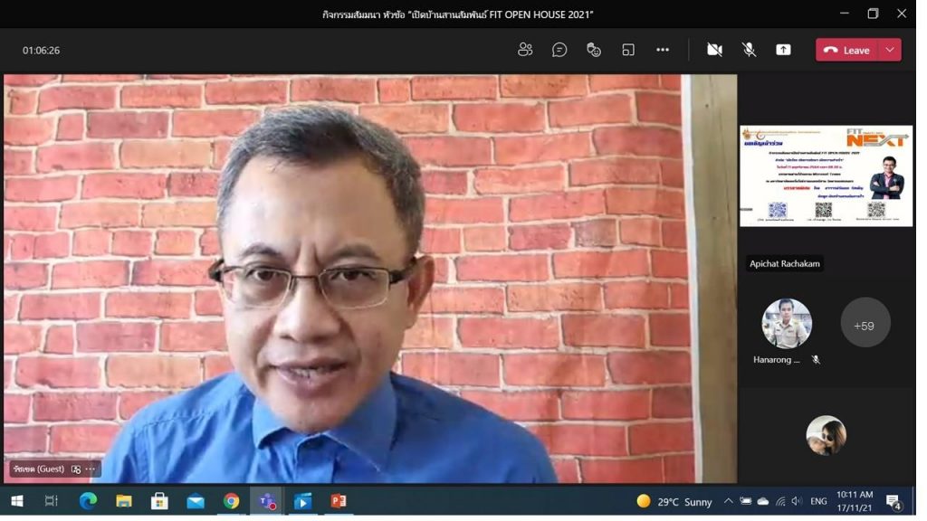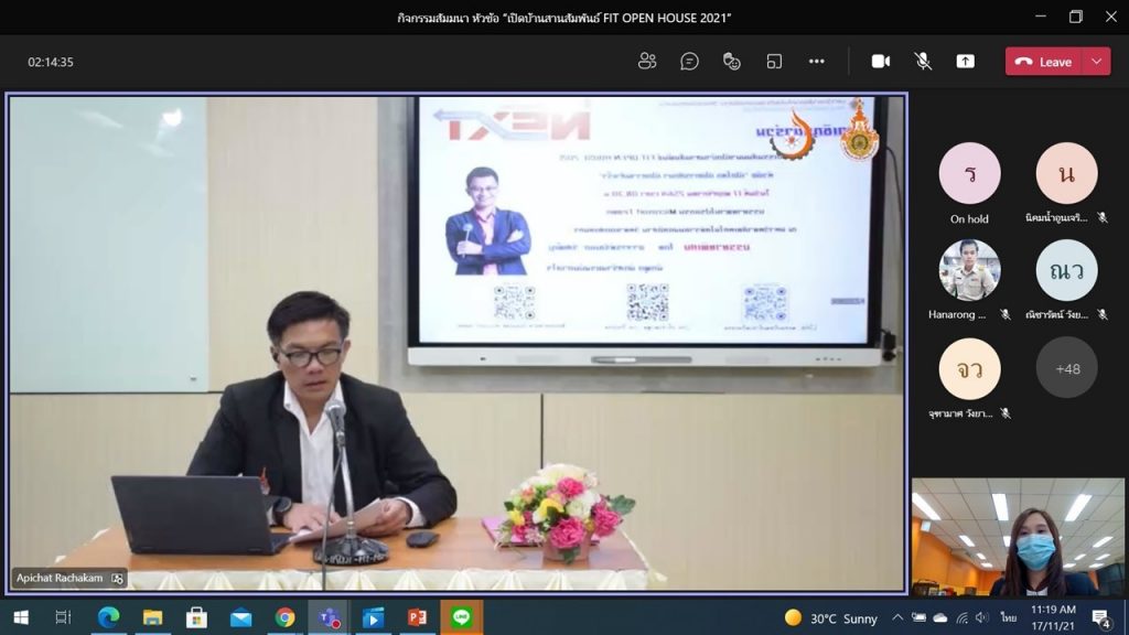 วันที่ 17 พฤศจิกายน 2564 คณะอุตสาหกรรมและเทคโนโลยี มทร.อีสาน วิทยาเขตสกลนคร จัดกิจกรรมเปิดบ้านสานสัมพันธ์ FITOPENHOUSE2021 ผ่านระบบออนไลน์ Microsoft Team ณ ห้องปฎิบัติการสร้างต้นแบบนวัตกรรม โดยมีวัตถุประสงค์เพื่อเสวนาแลกเปลี่ยนด้านการจัดการเรียนการสอนระหว่างการศึกษาระดับมัธยมศึกษา อาชีวศึกษา และอุดมศึกษา โดยบูรณาการหลักสูตรให้สอดคล้องส่งเสริมการศึกษาในระดับที่สูงขึ้น เพื่อบริการด้านวิชาการ นวัตกรรมสื่อการเรียนการสอน ให้กับสถานศึกษาต่างๆ สร้างความสัมพันธ์อันดีระหว่างมหาวิทยาลัยกับสถานศึกษาเครือข่ายความร่วมมือทางด้านการบริการวิชาการและการจัดการศึกษา โดยได้รับเกียรติจากอาจารย์รัชเขต วีสเพ็ญ นักพูดสร้างแรงบันดาลใจเป็นวิทยากร ในการนี้ ผศ.ดร.สุริยา แก้วอาษา คณบดีคณะอุตสาหกรรมและเทคโนโลยีให้เกียรติเป็นประธานในพิธีเปิดโครงการ โดยมีผู้เข้าร่วมโครงการเป็นกลุ่มบุคลากรทางการศึกษา ผู้รับผิดชอบงานแนะแนวในสถานศึกษา