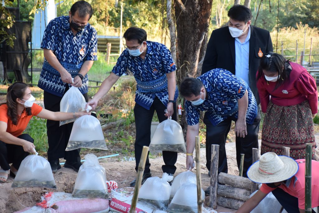 วันที่ 25 พฤศจิกายน 2564 คณะทำงานหนุนเสริมด้านทักษะชีวิต คณะอุตสาหกรรมและเทคโนโลยี จัดโครงการส่งเสริมให้นักศึกษาทุนสามารถสร้างสิ่งประดิษฐ์ นวัตกรรม งานสร้างสรรค์ ในงานสายอาชีพชั้นสูง สำหรับนักศึกษาทุน กสศ. ระดับประกาศนียบัตรวิชาชีพชั้นสูง (ปวส.) รุ่น 3 โดยมีวัตถุประสงค์เพื่อให้นักศึกษาทุนนวัตกรรมสายอาชีพชั้นสูงเกิดกระบวนการส่งเสริมเพื่อพัฒนาศักยภาพนักศึกษาด้านการสร้างสรรค์สิ่งประดิษฐ์ นวัตกรรม ที่สามารถนำไปพัฒนาและขับเคลื่อนในทุกมิติเพื่อยกระดับคุณภาพชีวิตและพัฒนาชุมชน อันจะก่อให้เกิดทักษะการเรียนรู้ในศตวรรษที่ 21 ในการนี้ได้รับเกียรติจาก ผศ.ดร. สุริยา แก้วอาษา คณบดีคณะอุตสาหกรรมและเทคโนโลยี พร้อมคณะผู้บริหาร ร่วมกิจกรรมในครั้งนี้ด้วย ซึ่งมีกิจกรรมประกอบด้วย การสร้างนวัตกรรมเครื่องให้อาหารปลาอัตโนมัติจากพลังงานแสงอาทิตย์ และการปล่อยลูกปลานิลและปลาดุก จำนวน 4,000 ตัว