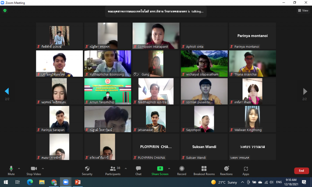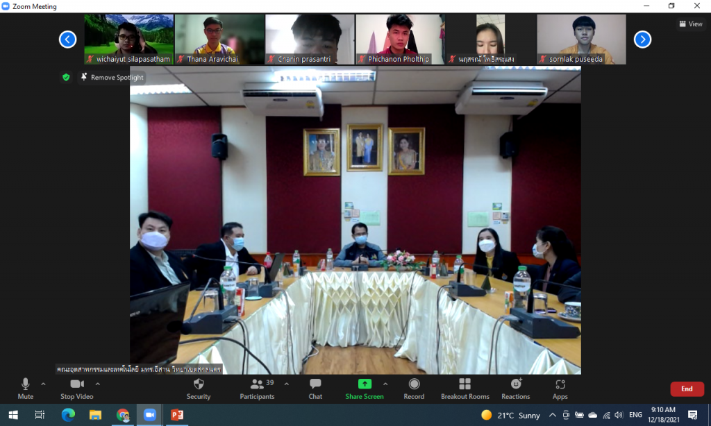 วันที่ 18 ธันวาคม 2564 คณะอุตสาหกรรมและเทคโนโลยี มทร.อีสาน วิทยาเขตสกลนคร จัดกิจกรรมสัมมนาแลกเปลี่ยนเรียนรู้ประสบการณ์วิชาชีพครูครั้งที่ 1 ผ่านระบบอิเล็กทรอนิกส์(Zoom Meeting) ณ ห้องประชุมสำนักงานคณบดีชั้น 2 โดยมีวัตถุประสงค์เพื่อเพิ่มเติมประสบการณ์ทางด้านอาชีพเเละการพัฒนาตนเองแก่นักศึกษาฝึกประสบการณ์วิชาชีพเเละก่อให้เกิดการพัฒนาหลักสูตรการเรียนการสอนที่ทันสมัยตอบรับตลาดเเรงงานที่มีเเนวโน้มเปลี่ยนเเปลงตลอดเวลา ในการนี้ ผศ.ดร.สุริยา แก้วอาษา คณบดีคณะอุตสาหกรรมและเทคโนโลยี ให้เกียรติเป็นประธานในพิธีเปิดโครงการ โดยมีนักศึกษาหลักสูตรครุศาสตร์อุตสาหกรรมบัณฑิต สาขาวิชาครุศาสตร์อุตสาหกรรมอิเล็กทรอนิกส์เเละโทรคมนาคม เข้าร่วมกิจกรรมผ่านระบบอิเล็กทรอนิกส์ จำนวน 60 คน