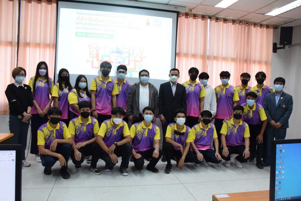 วันที่ 15-16 มกราคม 2565 คณะอุตสาหกรรมและเทคโนโลยี มทร.อีสาน วิทยาเขตสกลนคร จัดโครงการส่งเสริมทักษะและความรู้ที่จำเป็นในศตวรรษที่ 21 ให้กับนักศึกษาทุนนวัตกรรมสายอาชีพชั้นสูง ประจำปีการศึกษา พ.ศ.2564 ณ ห้องปฏิบัติการคอมพิวเตอร์ ชั้น 4 โดยมีวัตถุประสงค์เพื่ออบรมเชิงปฏิบัติการให้ความรู้และสร้างทักษะที่จำเป็นในศตวรรษที่ 21 ด้านเทคโนโลยีสารสนเทศ ซึ่งเป็นการส่งเสริมให้นักศึกษาทุน กสศ. นำความรู้ที่ได้ไปใช้ในชีวิตประจำวันและใช้ในการเรียน ได้อย่างมีประสิทธิภาพ โดยมีหัวข้อการฝึกอบรมคือ การใช้คอมพิวเตอร์และโปรแกรมเบื้องต้นในชีวิตประจำวัน การติดตั้งอุปกรณ์ และโปรแกรมคอมพิวเตอร์เบื้องต้น การใช้ Google Applications สำหรับการสนับสนุนการเรียนอย่างมีประสิทธิภาพ ในการนี้ ผศ. ดร.พรเทพ ปัญญาแก้ว รองคณบดีฝ่ายวิชาการและวิจัย ให้เกียรติเป็นประธานในพิธีเปิดโครงการครั้งนี้