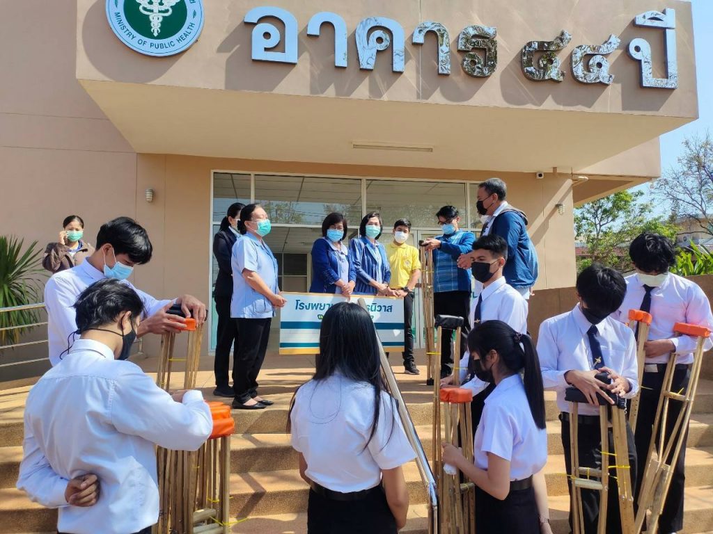 วันที่ 25 กุมภาพันธ์ 2565 คณะอุตสาหกรรมและเทคโนโลยี มทร.อีสาน วิทยาเขตสกลนคร นำโดย อาจารย์จารุวัฒน์ ถาวรไพศาลชีวะ รองคณบดีฝ่ายพัฒนานักศึกษา พร้อมด้วยคณาจารย์ เจ้าหน้าที่ และนักศึกษาสาขาวิศวกรรมโยธา จัดกิจกรรมจิตอาสา สร้างจิตสาธารณะ ณ โรงพยาบาลวานรนิวาส อำเภอวานรนิวาส จังหวัดสกลนคร โดยมอบไม้ค้ำยันช่วยพยุงเดิน ผลงานของนักศึกษาสาขาวิศวกรรมโยธา ให้กับโรงพยาบาลวานรนิวาส เพื่อนำไปใช้ประโยชน์ในทางการเเพทย์ต่อไป