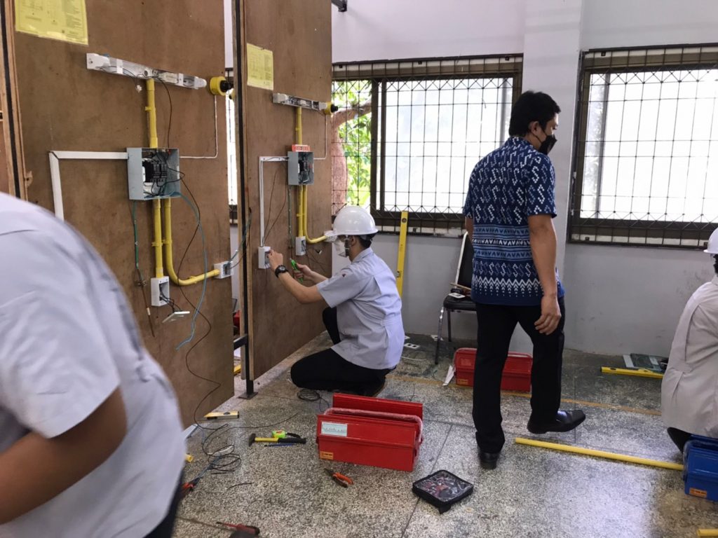 วันที่ 3-4 มีนาคม 2565 คณะอุตสาหกรรมและเทคโนโลยี มทร.อีสาน วิทยาเขตสกลนคร จัดการทดสอบมาตรฐานฝีมือแรงงานแห่งชาติ สาขาอาชีพช่างไฟฟ้าภายในอาคาร ระดับ 1 ณ ห้องทดสอบภาคปฎิบัติ อาคารวิศวกรรมไฟฟ้า โดยมีวัตถุประสงค์เพื่อพัฒนาทักษะการปฏิบัติงานให้กับนักศึกษาสังกัด มทร.อีสาน วิทยาเขตสกลนคร และบุคคลทั่วไป อันจะเป็นการส่งเสริมฝีมือแรงงาน ให้ได้มาตรฐานฝีมือแรงงานแห่งชาติ โดยการทดสอบแบ่งเป็นภาคทฤษฏีและภาคปฏิบัติ มีผู้เข้าร่วมทดสอบมาตรฐานฝีมือแรงงานครั้งนี้ จำนวน 31 คน