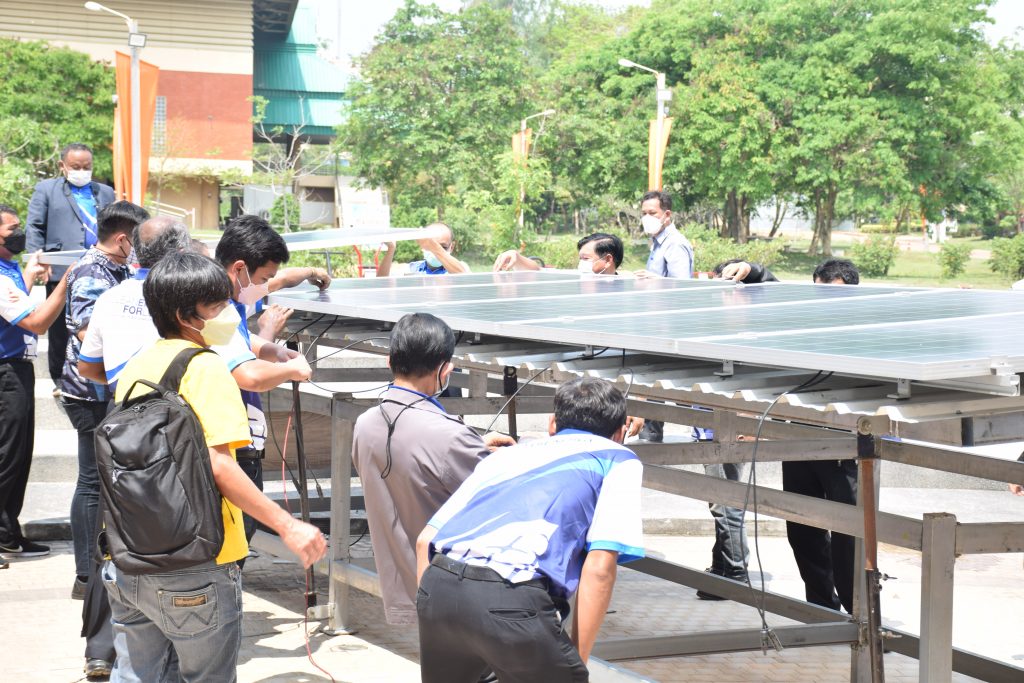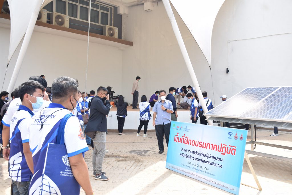 วันที่ 16-18 มีนาคม 2565 คณะวิศวกรรมศาสตร์ มหาวิทยาลัยเทคโนโลยีราชมงคลธัญบุรี ร่วมกับคณะอุตสาหกรรมและเทคโนโลยี มทร.อีสาน วิทยาเขตสกลนคร จัดโครงการเสริมพลังผู้นำชุมชนผลิตไฟฟ้าจากพลังงานสะอาด ณ ห้องประชุมราชมงคล อาคาร 12 มทร.อีสาน วิทยาเขตสกลนคร โดยมีวัตถุประสงค์เพื่อสร้างผู้เชี่ยวชาญในการผลิตไฟฟ้าจากพลังงานสะอาดให้กับผู้แทนชุมชน องค์กรปกครองส่วนท้องถิ่นและสร้างเครือข่ายผู้เชี่ยวชาญด้านการผลิตพลังงานไฟฟ้าจากพลังงานแสงอาทิตย์ และพลังงานชีวมวล โดยได้รับเกียรติจาก นายชูศักดิ์ รู้ยิ่ง รองผู้ว่าราชการจังหวัดสกลนคร เป็นประธานในพิธีเปิดโครงการ ในการนี้ ผศ.น.สพ.ดร.ชเวง สารคล่อง รองอธิการบดีประจำวิทยาเขตสกลนคร กล่าวต้อนรับผู้เข้าร่วมงาน และ ผศ.ดร.สุริยา แก้วอาษา คณบดีคณะอุตสาหกรรมและเทคโนโลยี กล่าวรายงานถึงวัตถุประสงค์ของการจัดโครงการ โดยมีผู้แทนชุมชนและองค์กรปกครองส่วนท้องถิ่นในเขตภาคตะวันออกเฉียงเหนือเข้าร่วมโครงการจำนวน 100 คน ซึ่งได้รับการสนับสนุนงบประมาณจากกองทุนพัฒนาไฟฟ้า สำนักงานคณะกรรมการกำกับกิจการพลังงาน (กกพ.)
