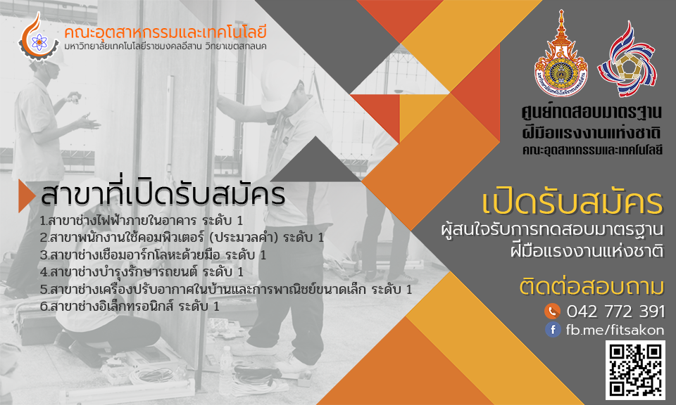 เปิดรับสมัครผู้สนใจ เข้ารับการทดสอบมาตรฐานฝีมือแรงงาน รวม 6 สาขา ดังนี้