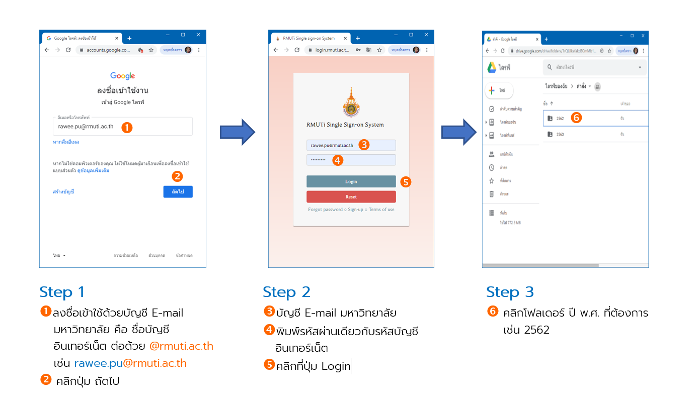 2. ลงชื่อเข้าใช้งานด้วยบัญชีอินเทอร์เน็ต (Internet Account) ของมหาวิทยาลัย ขั้นตอนเข้าใช้งาน ดังภาพตัวอย่างด้านล่าง